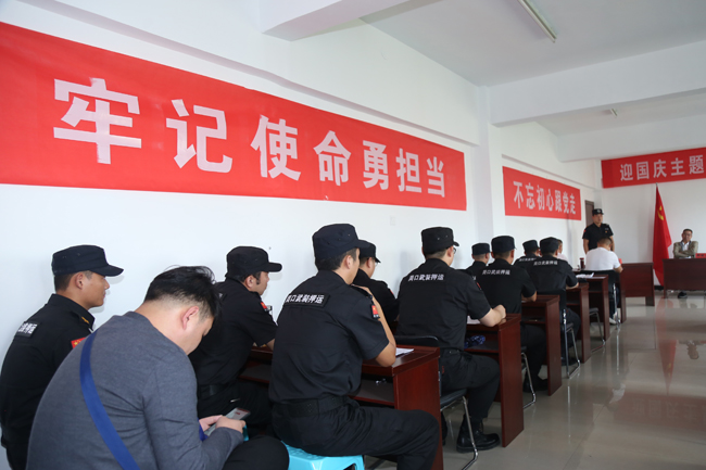 為開展好“不忘初心,牢記使命”主題教育和服務(wù)中華人民共和國成立七十周年安?;顒?, 2019年9月20日上午,周口市新時代保安服務(wù)有限責任公司在公司四樓會議室成功舉辦了“迎國慶主題黨日演講比賽”活動。公司機關(guān)全體,人防、技防、押運中心、培訓學校、子公司負責人,人防、押運各大隊長及演講參賽選手等50余人參加,公司領(lǐng)導(dǎo)范志剛、楊立德、鄭明山同志在主席臺就座。副總經(jīng)理桂長虹、耿學爭、楊書杰、李清和財務(wù)保障部主任韓宏蘊、押運中心主任陳思宇擔任評委,楊立德同志主持活動。