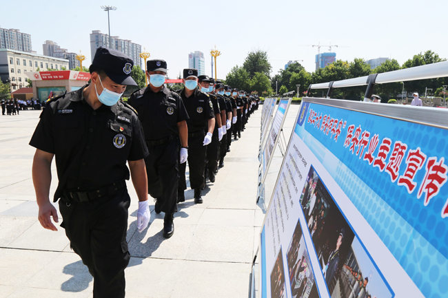 7月24日上午,按照公安部和省公安廳統(tǒng)一部署,由周口市公安局主辦,周口安保集團(tuán)有限公司承辦的“喜迎二十大 保安護(hù)平安”保安行業(yè)主題宣傳日活動在五一廣場隆重舉行。市公安局黨委委員、警訓(xùn)中心主任羅海龍,周口城投發(fā)展集團(tuán)有限公司黨委副書記、總經(jīng)理潘國華出席活動并講話。市公安局治安管理支隊支隊長馬磊,市公安局城區(qū)各分局分管領(lǐng)導(dǎo),周口安保集團(tuán)黨委書記、董事長任建軍,周口安保集團(tuán)在周黨委委員,以及民警方隊和周口安保集團(tuán)、押運公司、特保大隊、黨員突擊隊、青年突擊隊、保安方隊等7個方隊近400人參加活動。活動由周口市公安局治安管理支隊支隊長馬磊主持。